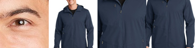 100% polyester, all season soft shell ; Wind resistant ; Water resistant, DWR finish ; Breathable ; 4-way stretch ; Media port ; Adjustable three-piece hood designed to contour for a comfortable fit; Zippered chest and hand pockets; Adjustable cuff ; Adjustable hem; Auto lock zipper with easy grab puller; Media port;