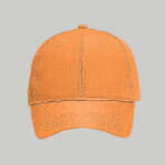 100% Cotton Unstructured Soft Crown Low-Fitting 4-panel cap Seamed Front Panel without Buckram Pro Stitch on Crown 4 Rows Stitching on Visor Matching Fabric Undervisor Matching Fabric Sweatband Matching Fabric Adjustable Strap with Brass Buckle Insert on Sweatband U.S. Patent 6,240,566 Color 009 is Pkn. Orange not Neon