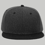 15% Wool 85% Acrylic Heather Black 20% Wool 80% Acrylic Structured Firm Front Panel 6-panel Cap Seamed Front Panel with Full Buckram 6 Embroidery Eyelets Pro Stitch on Crown 8 Rows Stitching on Visor Gray Undervisor Plastic Snap Closure
