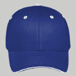 100% Cotton Structured Firm Front Panel Low-Fitting 6-panel cap Seamed Front Panel with Full Buckram 6 Sewn Eyelets; Curved Sandwich Visor 8 Rows Stitching on Visor Matching Fabric Undervisor Adjustable Hook and Loop Closure Size: OSFM -Adult (58cm/22.8")
