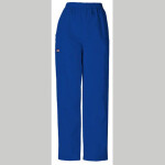 This elastic waist utility pant features a natural rise and tapered leg, two cargo pockets, a cell phone pocket and an outside scissor pocket. Inseam 30". Fabric: 65 Poly/35 Cotton Poplin w/ Soil Release